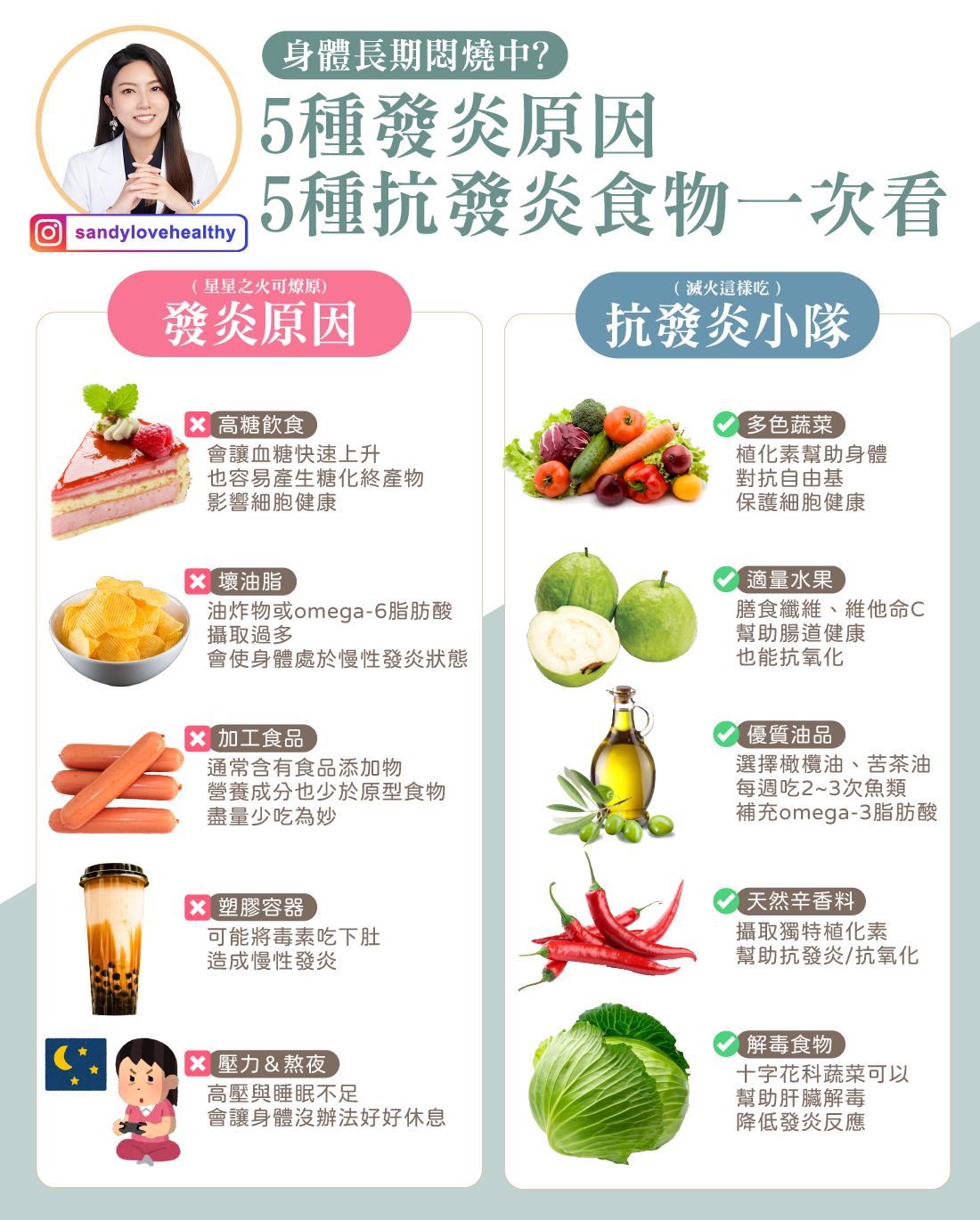 珊珊最後提醒,慢性發炎是經年累月形成的問題,修復過程同樣需要時間與耐心。調整飲食習慣後,通常需要一到三個月才能逐漸感受到身體狀態好轉,民眾切勿急於求成,只要持續從日常細節改善,就能有效熄滅體內火焰,重拾健康活力。