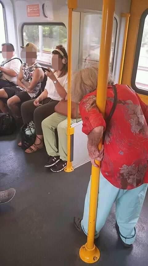 根據《ETtoday新聞雲》報導,這件事情發生在澳洲雪梨(Sydney)的火車上,有位滿頭白髮的阿嬤,上車後因為沒有座位了,就只好駝著背、緊抓著車廂的欄杆,非常吃力地站穩腳跟。而一旁坐著的4名年輕人,不是正在低頭滑手機,就是把手抱在胸前發呆。期間甚至有人朝阿嬤的方向看了一眼,但依舊沒有站起身讓座給可憐的阿嬤。