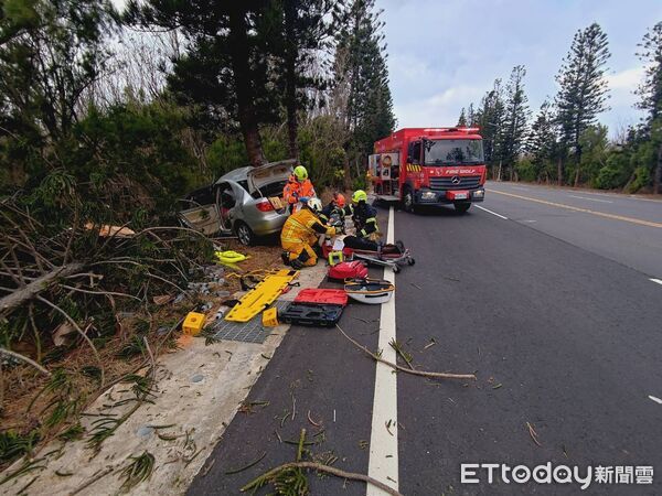 消防單位於當日下午4時17分接獲報案,指稱在縣道203線港子村往赤崁村路段,有自小客車疑似撞上路樹,車內2名乘客受困無法脫身。白沙及西嶼分隊隨即派出3輛消防車、7名救援人員趕赴現場。抵達事故地點後發現,小客車已衝進路旁樹叢當中,車體因撞擊力道過大而嚴重扭曲變形。