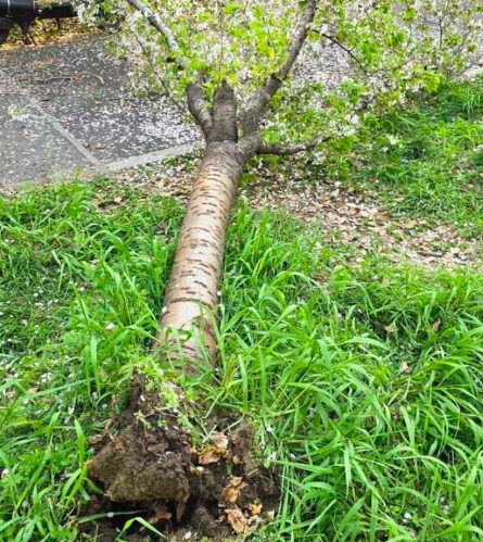 根據《星島日報》報導,當時這名女子先爬上櫻花樹枝幹,同行友人則在一旁協助用手機準備拍攝,過程中樹幹突然傾倒,整棵櫻花樹應聲倒地,所幸她並未受傷,事後仍能自行起身離開現場。