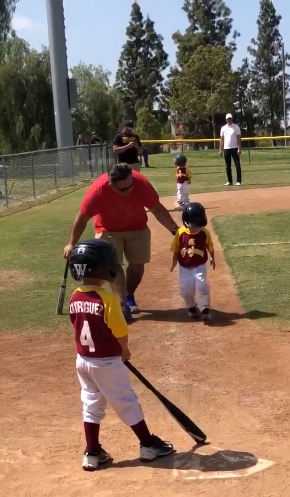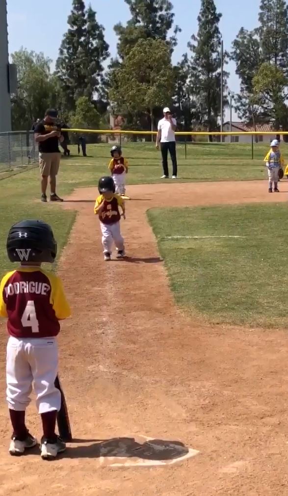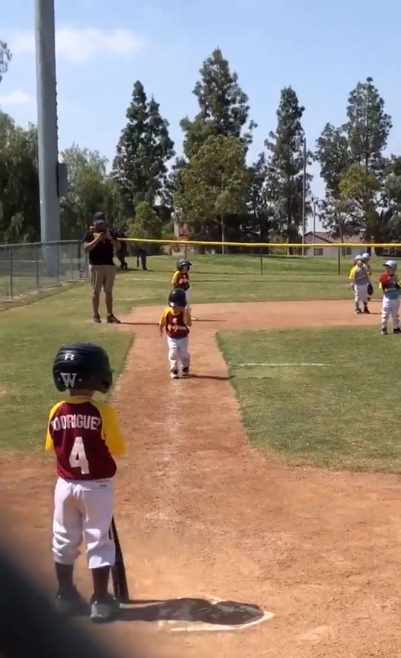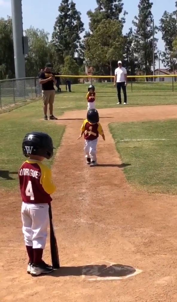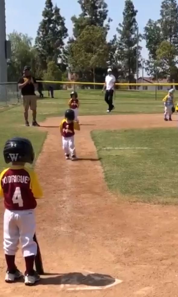事情發生在2018年,那時年僅3歲的薩西多現身在「核桃小馬棒球聯賽」(Walnut Pony Baseball League)擔任打者,當時的他需要從3壘奔回本壘,而教練也在一旁著急地催促他,要他盡全力往前跑,但萬萬沒想到,這時候的他卻決定要找點有趣的事情做啦!