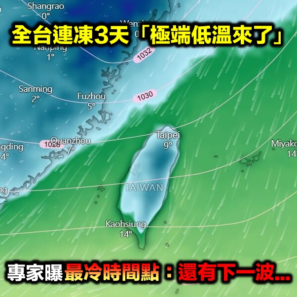 寒流來襲!全台連凍3天「極端低溫剩9度」 專家曝「最冷時間點」警告:不止這一波...