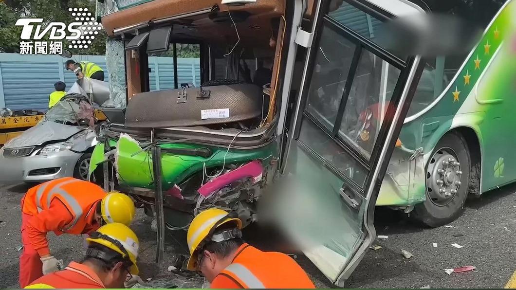 從事故詳情來看,在車禍首次撞擊時,駕駛並沒能馬上辨識周邊車況、其他車輛位置,且又因過度右轉而導致車身朝左傾斜,車頭也以45度向外側車道偏移,造成小客車遭受擠壓、撞擊。而後續遊覽車則直接撞上外側護欄,車尾部分則受到慣性而撞擊外側護欄、隔音牆,車上母子因此身亡。
