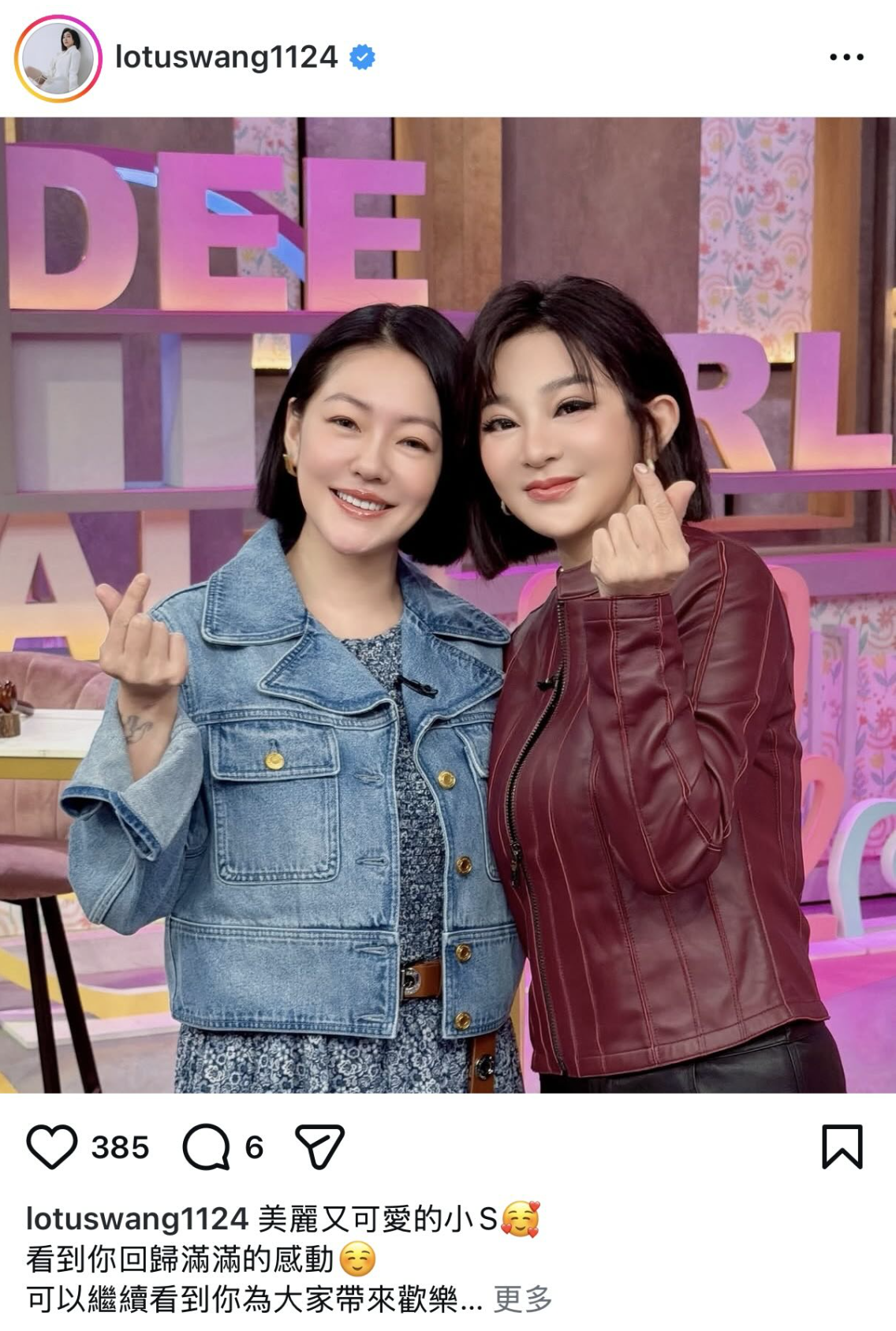 小S近期重返螢光幕主持《小姐不熙娣》,好友王彩樺也前往節目力挺。根據《三立新聞網》報導,錄製完畢後,57歲的王彩樺在社群平台分享兩人手指比心的合影,並寫下感性文字表示看見小S重新回歸感到相當感動,能夠繼續觀賞她為觀眾帶來歡笑真的超級開心。然而這張照片一曝光,卻意外引發討論。