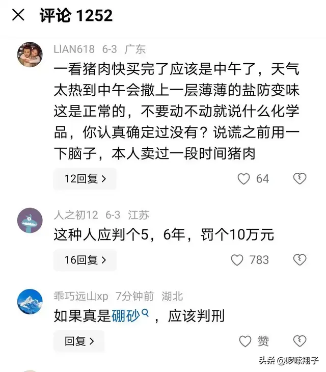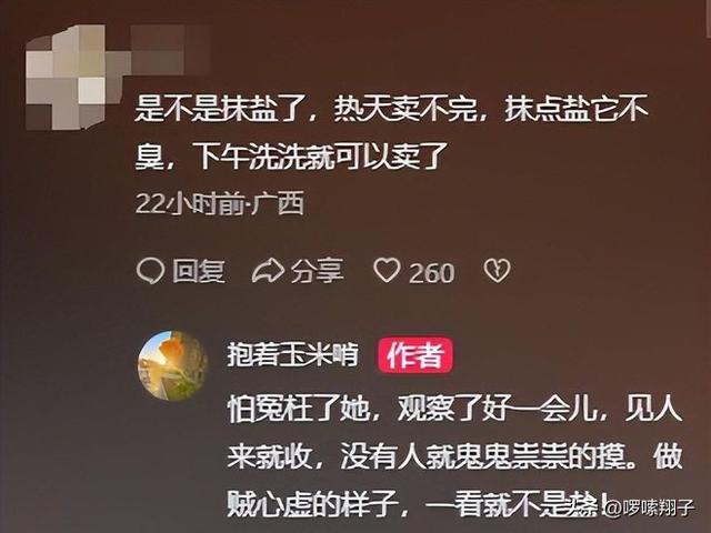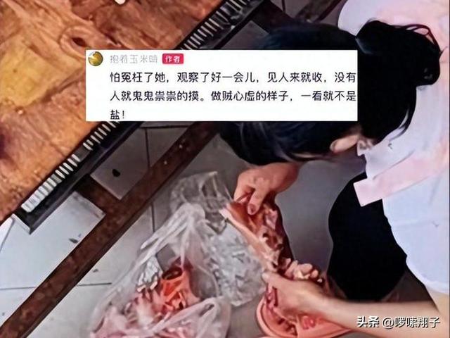 有網友表示女攤主有可能是在抹鹽,因為許多商家為了能將前一天沒賣完豬肉快速解凍,往往會通過抹鹽來解凍快。