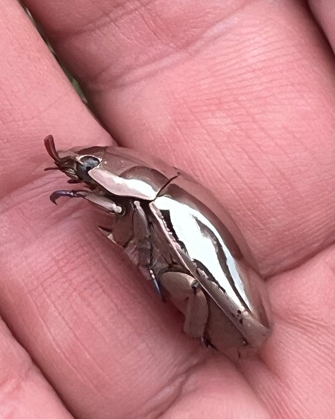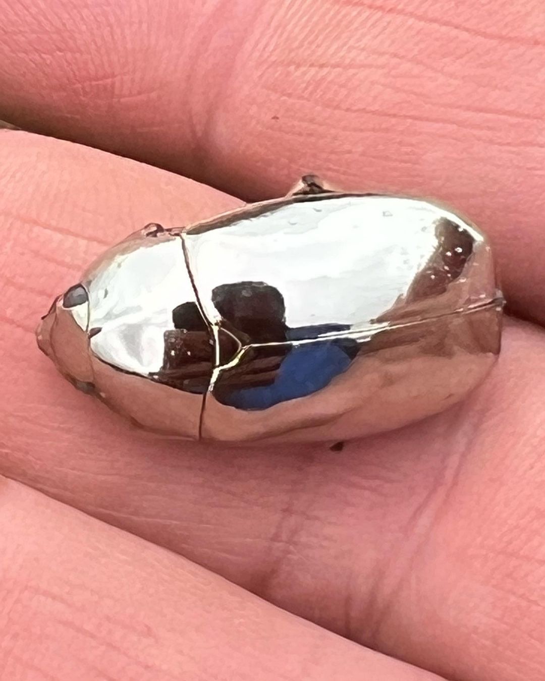 亮到以為是銀飾!後院驚見「銀色鏡面金龜子」真的沒眼花 一翻面「身體充滿未來感」根本科幻片生物
