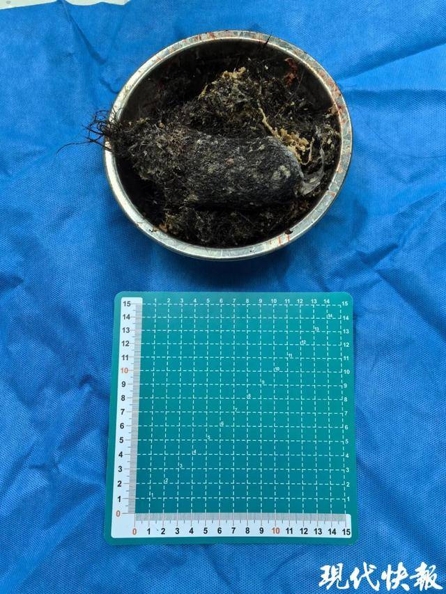 萱萱被迅速安排入住病房,經過胃鏡檢查,結果令人震驚!經年累月積聚的髮絲相互纏繞、緊密交織塞滿了整個胃,毛髮團的體積巨大、密不可分,常規內鏡器械根本無法將其取出,情況相當嚴重,需要進行手術治療。在聯繫兒外科會診後,萱萱來到兒外二科病房,準備接受手術。兒外二科主任壯文軍、迅速集結了一支由主任醫師袁捷,副主任醫師洪亞強、包景峰等兒外科專家組成的手術團隊,共同制定詳細的手術方案。